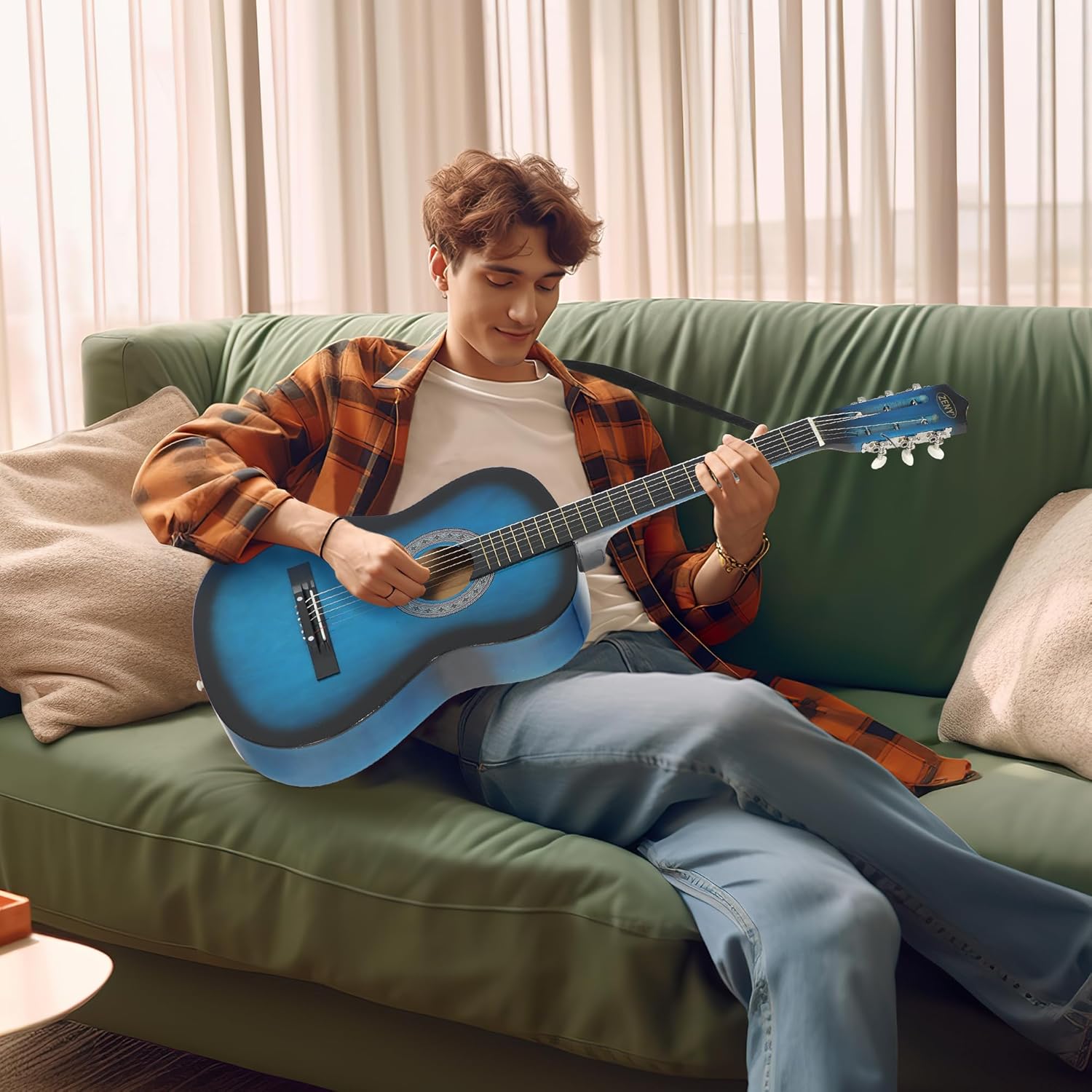 ZENY 38 inch Acoustic Guitar Full Size Beginners Package Kit for Right-handed Starters Kids Music Lovers w/Case, Strap, Pitch Pipe and Pick (Blue)