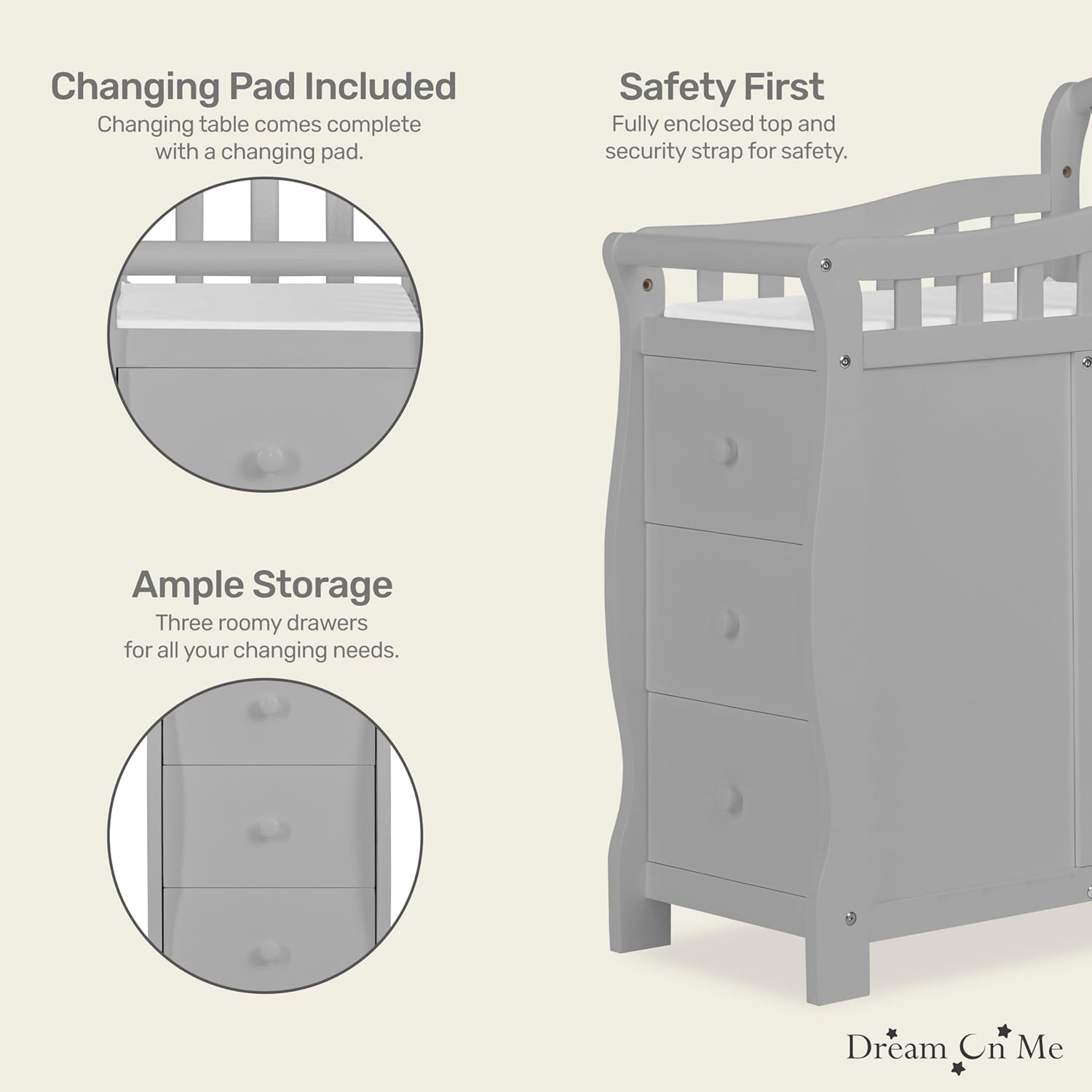 - FEATURE-HEAVY CHANGING TABLE: The Casco comes with a 3-drawer changing table, equipped with a changing pad and a security strap to keep your baby safely secured. Keep baby essentials handy and neatly organized in the 3 roomy drawers. Note: The changing table can be used as a standalone piece only in twin bed conversion mode.