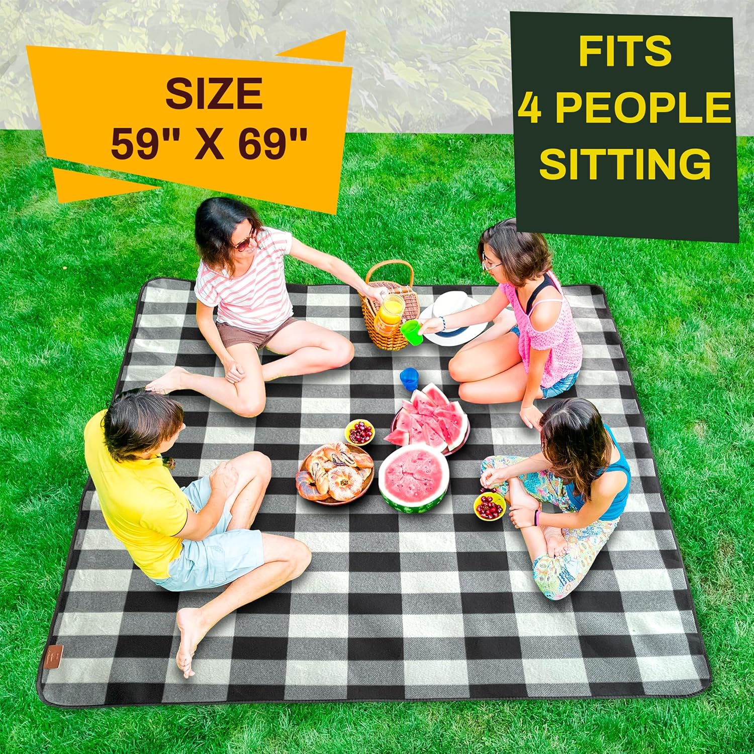 - Large and Foldable : This large picnic mat size is about L 59" X W 69" and can comfortably fit up to 4 adults, suitable for the whole family; after fold, the large picnic blanket shrinks down to just 6" X 12", great for you to carry out to travelling and camping with built-in PU leather handle.