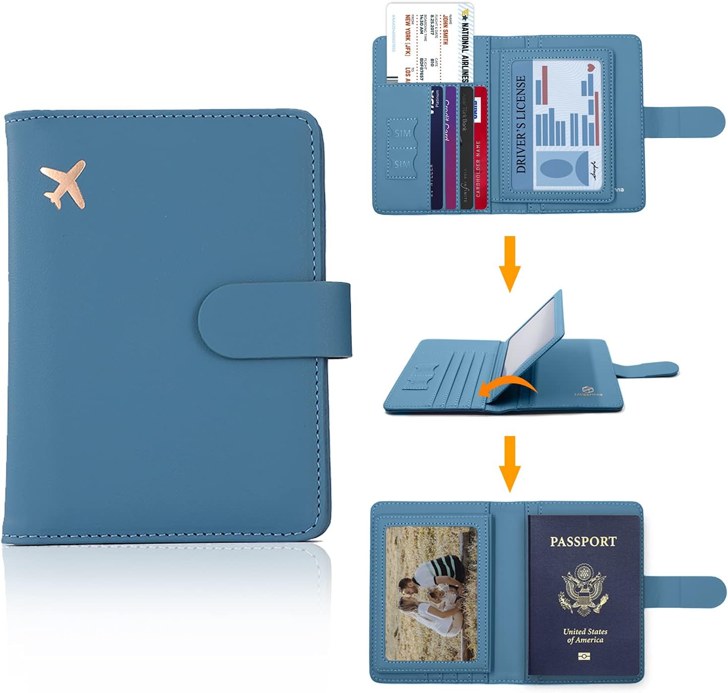 - 【Snap Button Closure and Security Protective】The passport holder with the hidden magnetic snap button closure design, which is safe and reliable to protect your travel items from being lost,to provide dual protection.Besides,RFID blocking shield material inside, Our passport case has a material engineered specifically to block 13.56 MHz or higher RFID signals and protect our important private information stored on your passport and credit cards from unauthorized scans.