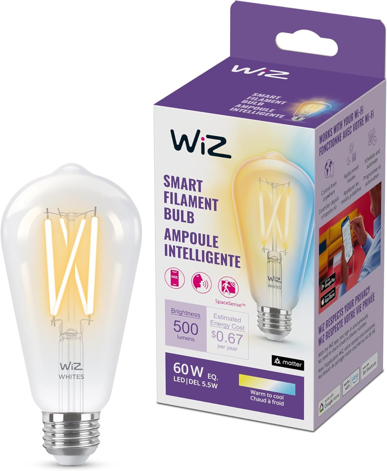 WiZ Connected 60W ST19 Tunable White Filament LED Smart Light Bulbs - Connects to Your Wi-Fi - E26 Smart Bulb - Control with Voice or App + Activate with Motion - Matter Compatible - 1 Pack