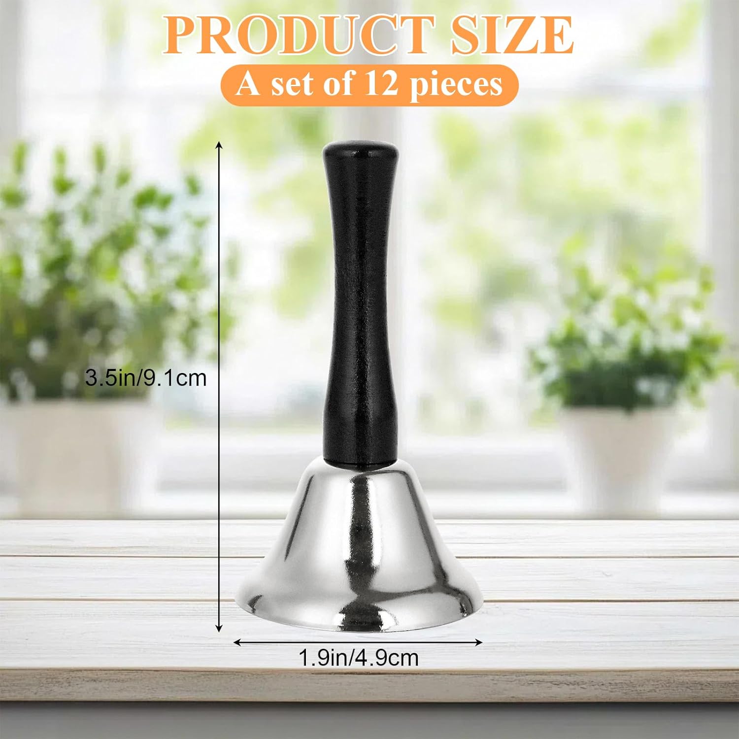 CYEAH 12 Pack Hand Bell, Silver Steel Service Bell Call Bell Dinner Bell for Wedding, Service, Game, Alarm, Jingles (Silver)