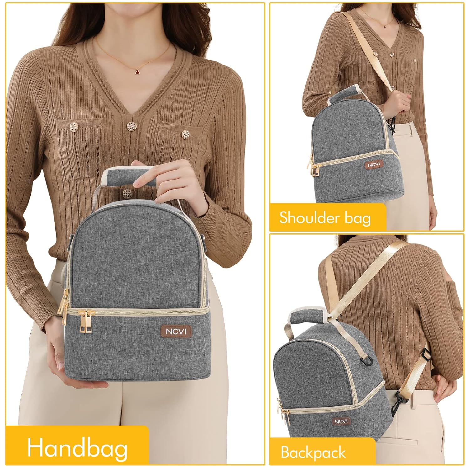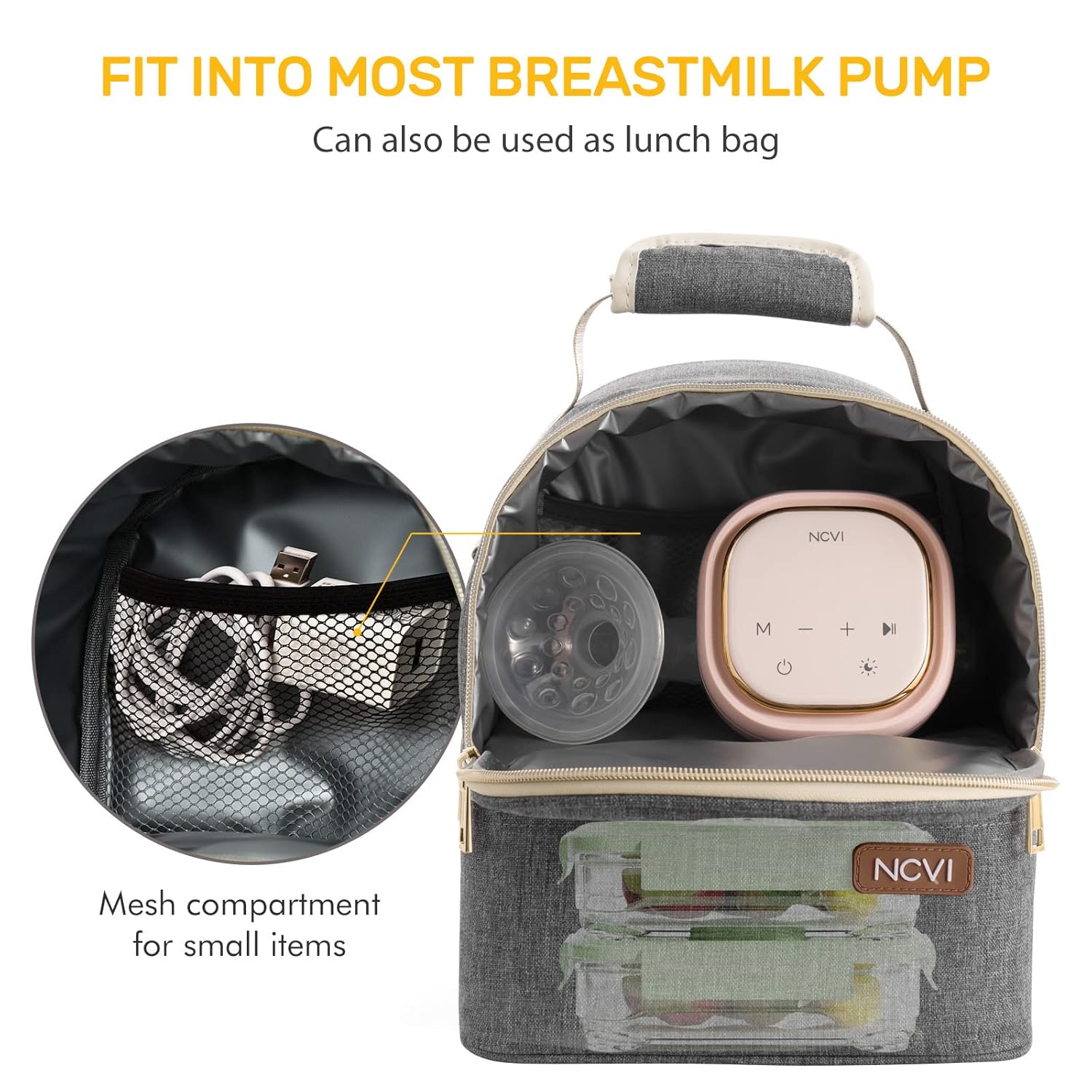 NCVI Breastmilk Cooler Bag with 2 Ice Pack, Breast Pump Bag with Cooler Fits 6 Bottles, Double Layer Breast Milk Baby Bottle Cooler Bag, for Travel, Nursing Mom Daycare, Work, Picnic (Grey)