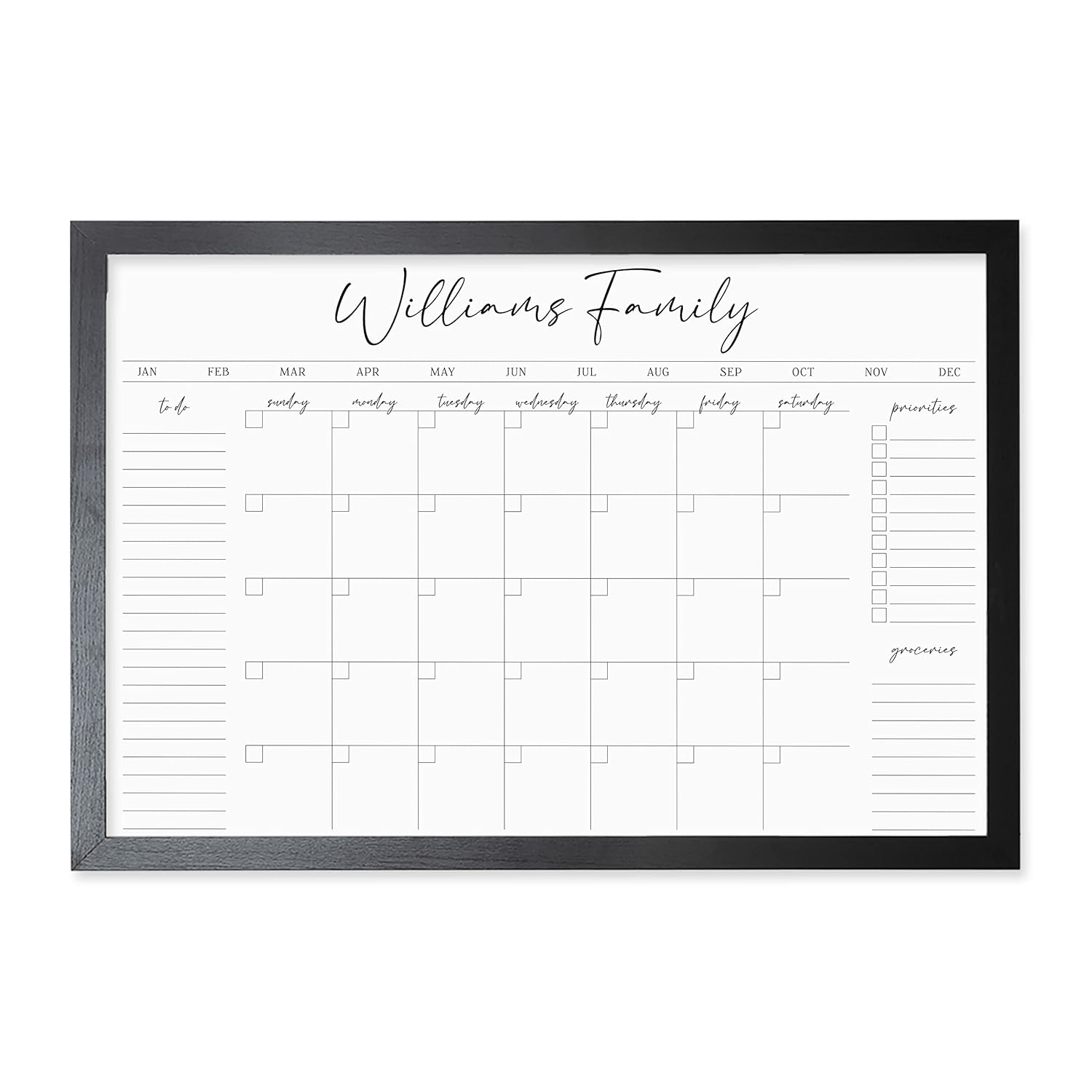 - Customizable Framed Family Calendar with Side Sections