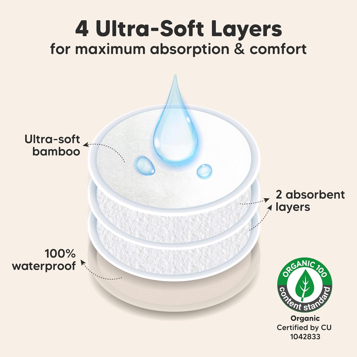 - Great For Leakages – Leakage is a thing of the past with our 4-layer nursing pads. KeaBabies Nursing Pads feature three layers of ultra-absorbent viscose derived from bamboo, sealed with a protective waterproof outer layer for extra security on the nipple pads. Tip: If you experience a heavy flow, please replace breast pads every 5-6 hours.