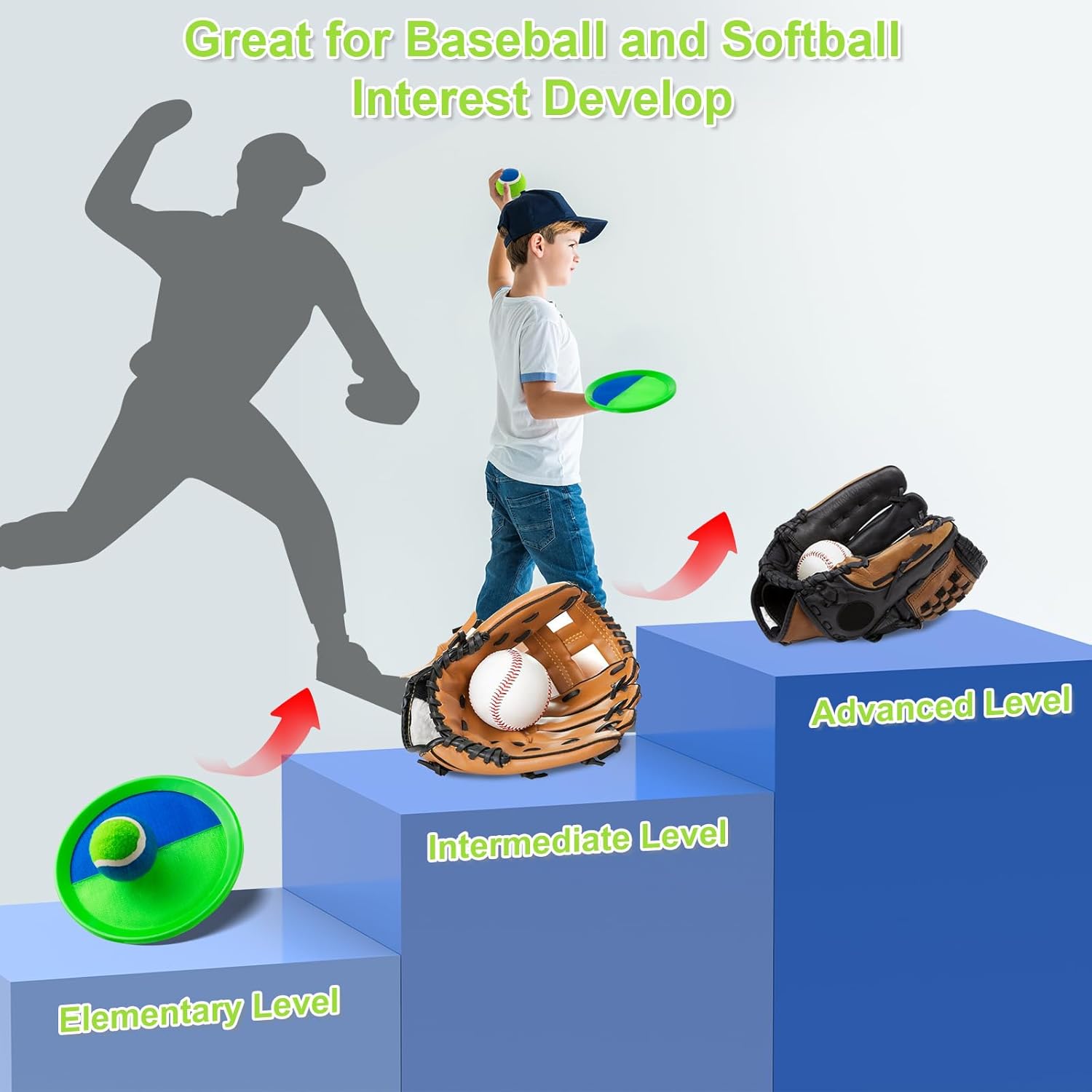 Ayeboovi Kids Outdoor Beach Pool Toys Toss and Catch Ball Set Upgraded Light UP Ball Yard Lawn Games for 3-10 Years Boys Girls Toddlers Easter Basket Stuffers-Green