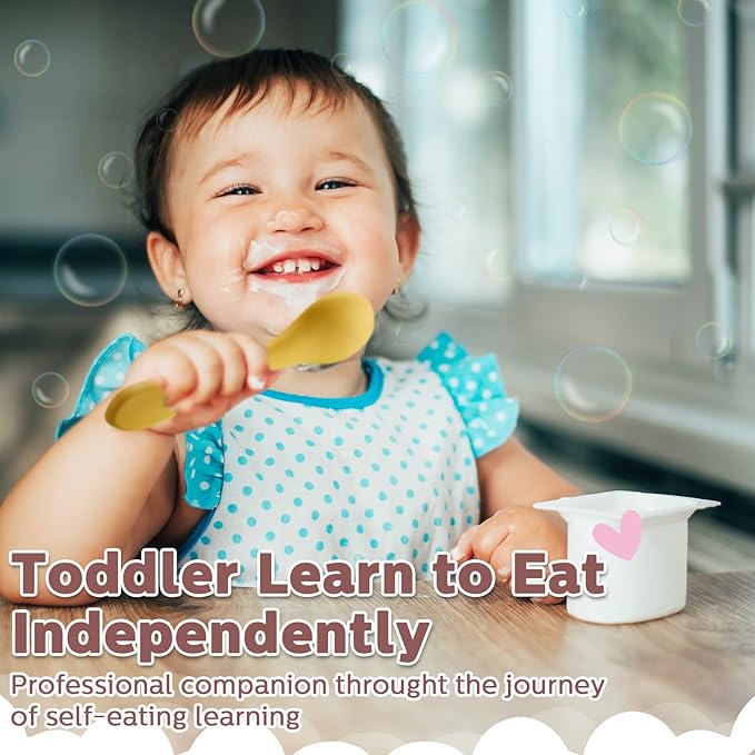 - Easy to clean: owing to the material, the baby self feeding spoons are easy to wash, you can wash them under running water, not easy to deform and wear, they are cleanable and reusable, you can place them in boiling water before use, after finishing eating, you can also put them in refrigerator to store