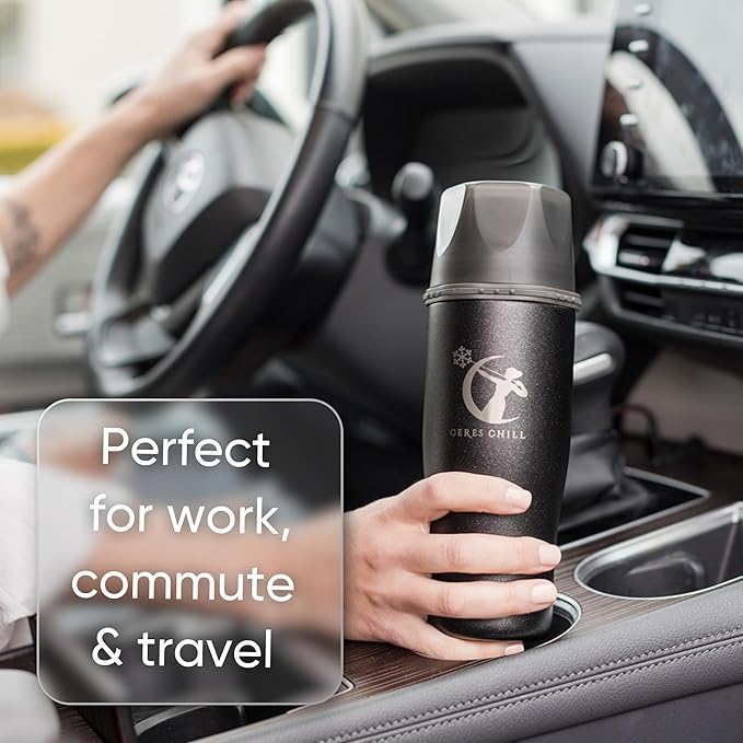 CERES CHILL Mini Breastmilk Chiller Demigoddess, Up to 12 oz. Reusable Storage Container, Keeps Milk at Safe Temperatures for Up to 16 Hours, Bottle Cooler, Connects w/Most Pumps (Shimmering Black)