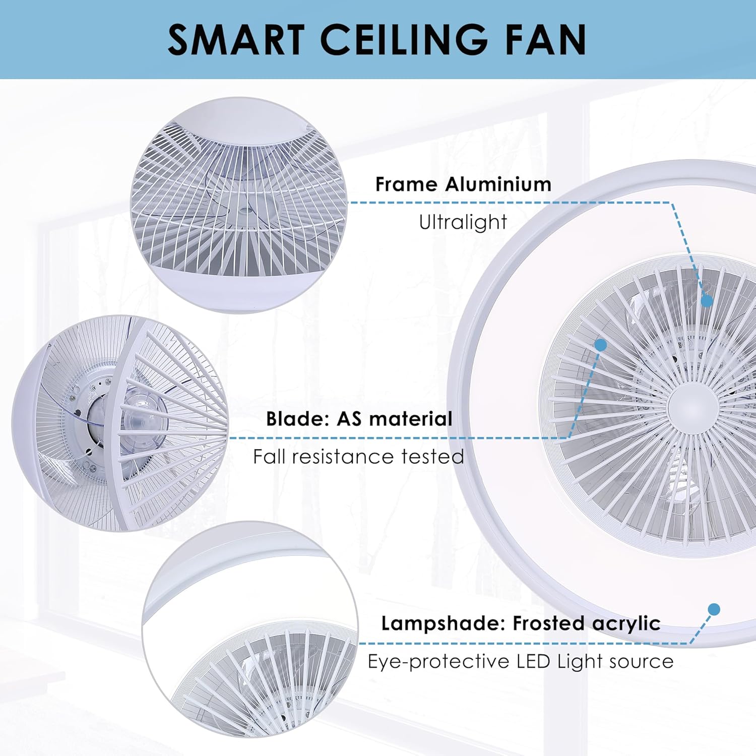 - Smart APP and Voice Control: Add this smart fan light to your Tuya Smart App and connect to your Amazon Alexa/Google Assistant account in a 2.4Ghz network environment. Use simple voice commands. Control your fans light hands-free