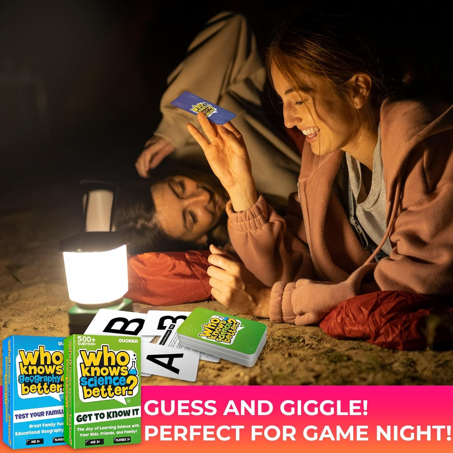 QUOKKA Who Knows Better? - Set 4 in 1 - Family Card Trivia Game | Fun Learning & Educational Questions for Families | Suitable for Boys & Girls