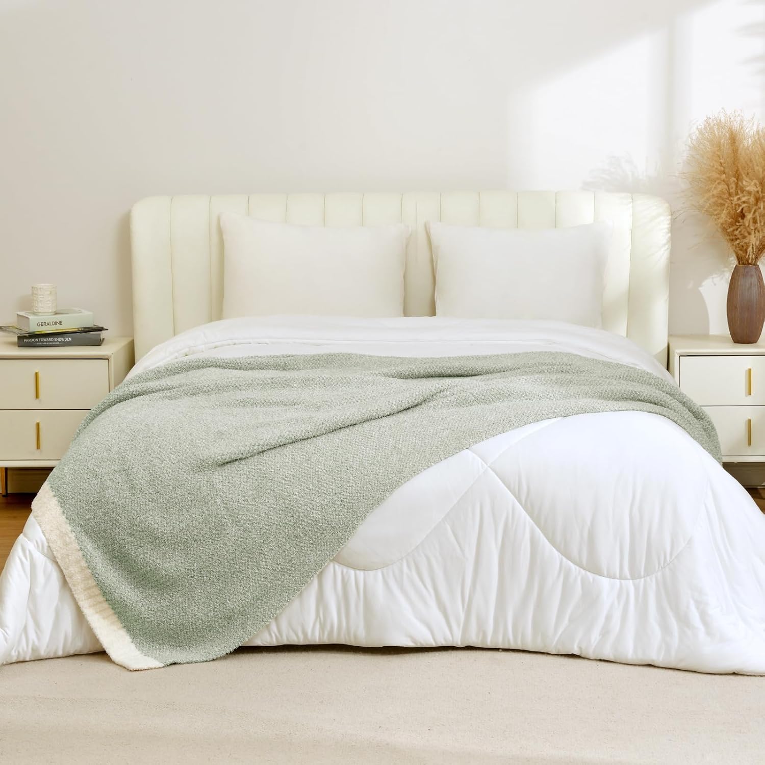 Snuggle Sac Heather Sage Green Blanket for Couch, Reversible Super Soft Knitted Blankets Warm Cozy Fuzzy Plush Throw Blankets for Sofa, Bed, Camping, Sage Green, 60x80 inches