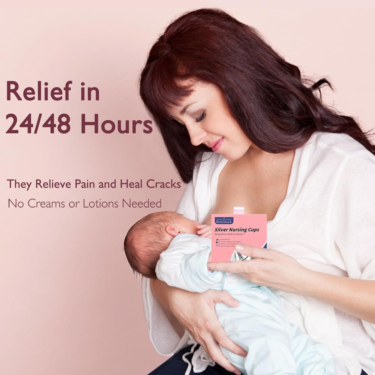 - For Sore & Sensitive Nipples: Boboduck silver nipple shields and zero-touch silicon rings unite to form the perfect remedy for sore and sensitive nipples. Thanks to the healing and soothing properties of silver, our 999 sterling silver cups can quickly help you heal and soothe your cracked nipples. It combines with medical grade silicone rings creates a perfect shape and comfortable edges so you barely feel like you're wearing them!