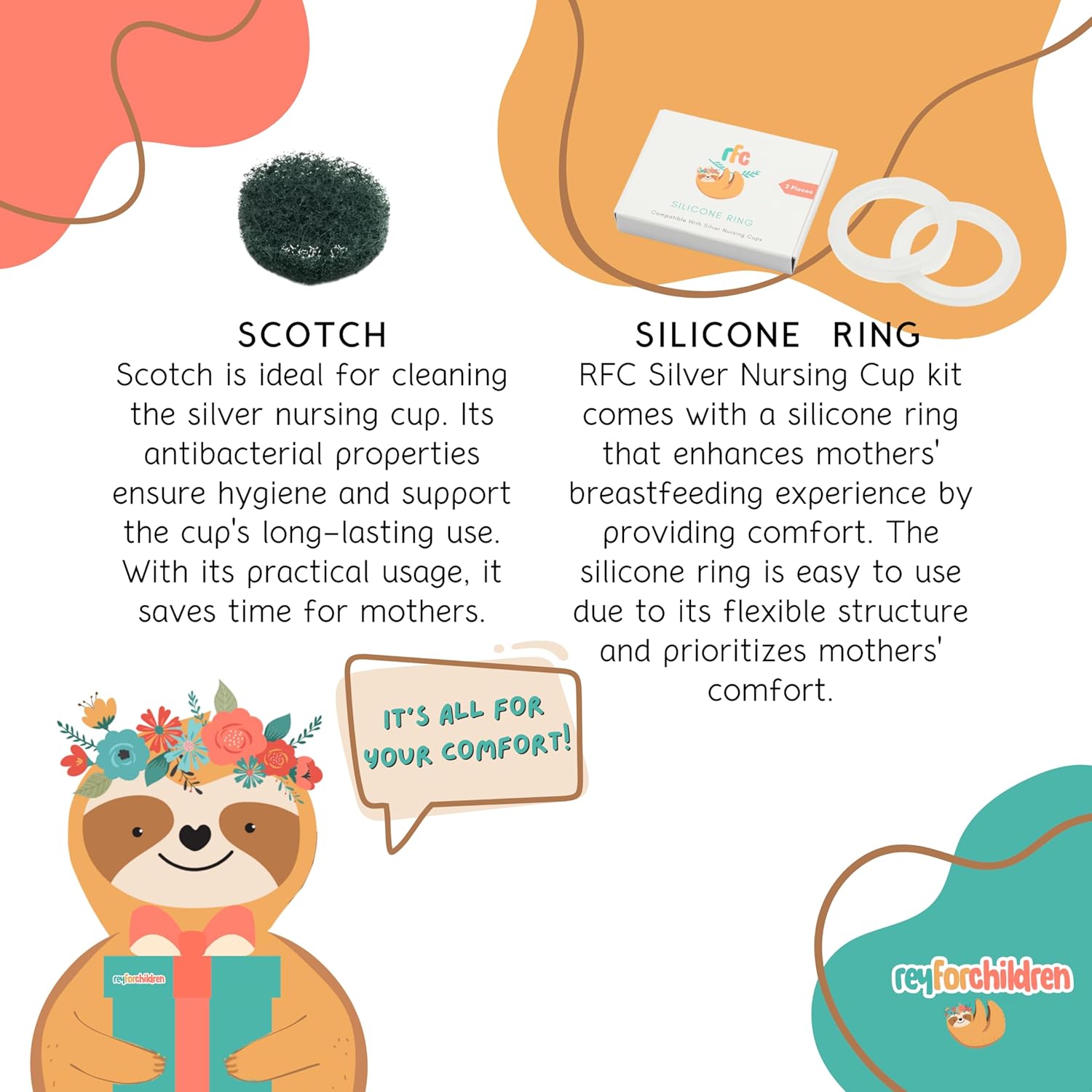 RFC Silver Nursing Cups - 999 Silver Nursing Pad - Nipple Shield Kit for Nursing Newborn - Breastfeeding Essentials - Nipple Cover Breastfeeding - With Silicone Ring & Cleaning Scotch & Case (REGULAR)