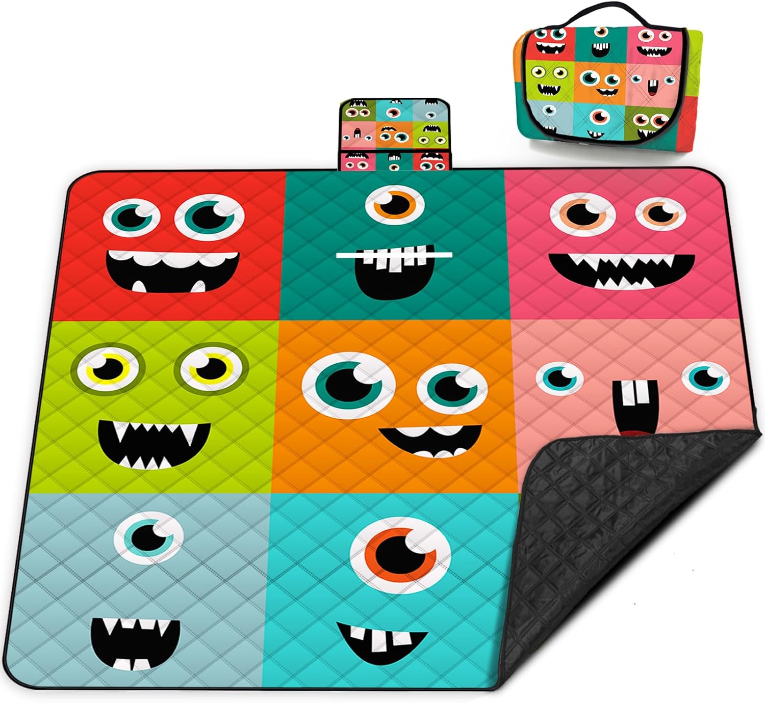 Extra Large Picnic Blanket Waterproof,80"x 80"Foldable Machine Washable Beach Blankets,Outdoor Blanket for 6-8 Adults,Picnic Mat Suitable for Indoor Crawling,Park Beach,Camping,Hiking,Travel (Face)