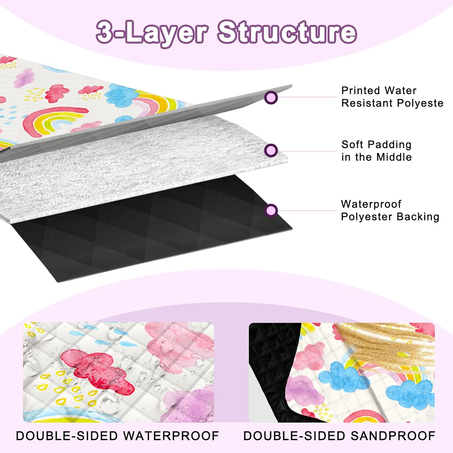 - 【🍕🍕🍿🍸🍹🍒Comfortable Picnic Blankets】The upper material is made of waterproof fongee fabric, Excellent waterproof performance, Can keep clean, The bottom layer is made of wear-resistant Oxford cloth, which repels moisture, sand and insects.Thickened middle padding layer can cushion hard or uneven ground, so that whether you are in the park, beach or any outdoor place, the Pcnic blanket can provide you with a comfortable and clean sitting surface.