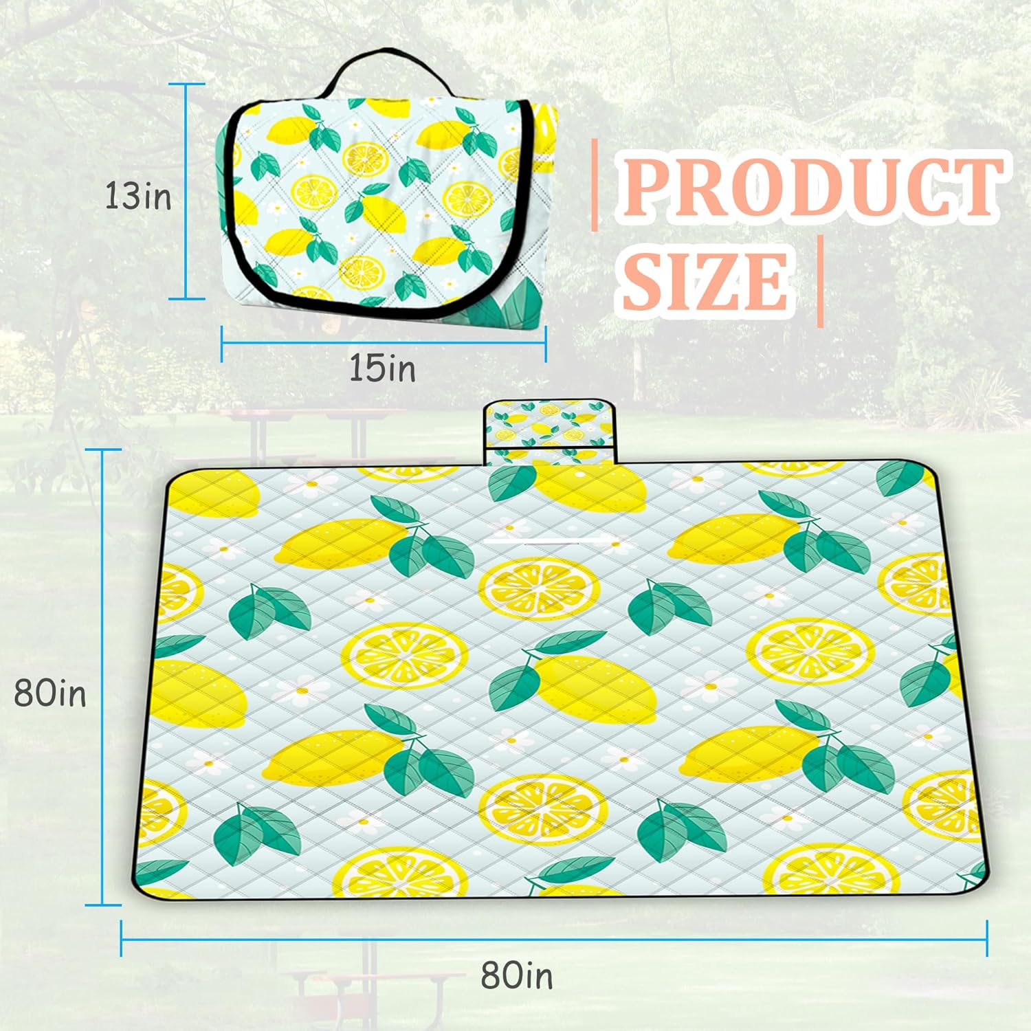 Extra Large Picnic Blanket Waterproof,80"x 80"Foldable Machine Washable Beach Blankets,Outdoor Blanket for 6-8 Adults,Picnic Mat Suitable for Indoor Crawling,Park Beach,Camping,Hiking,Travel(Lemon)