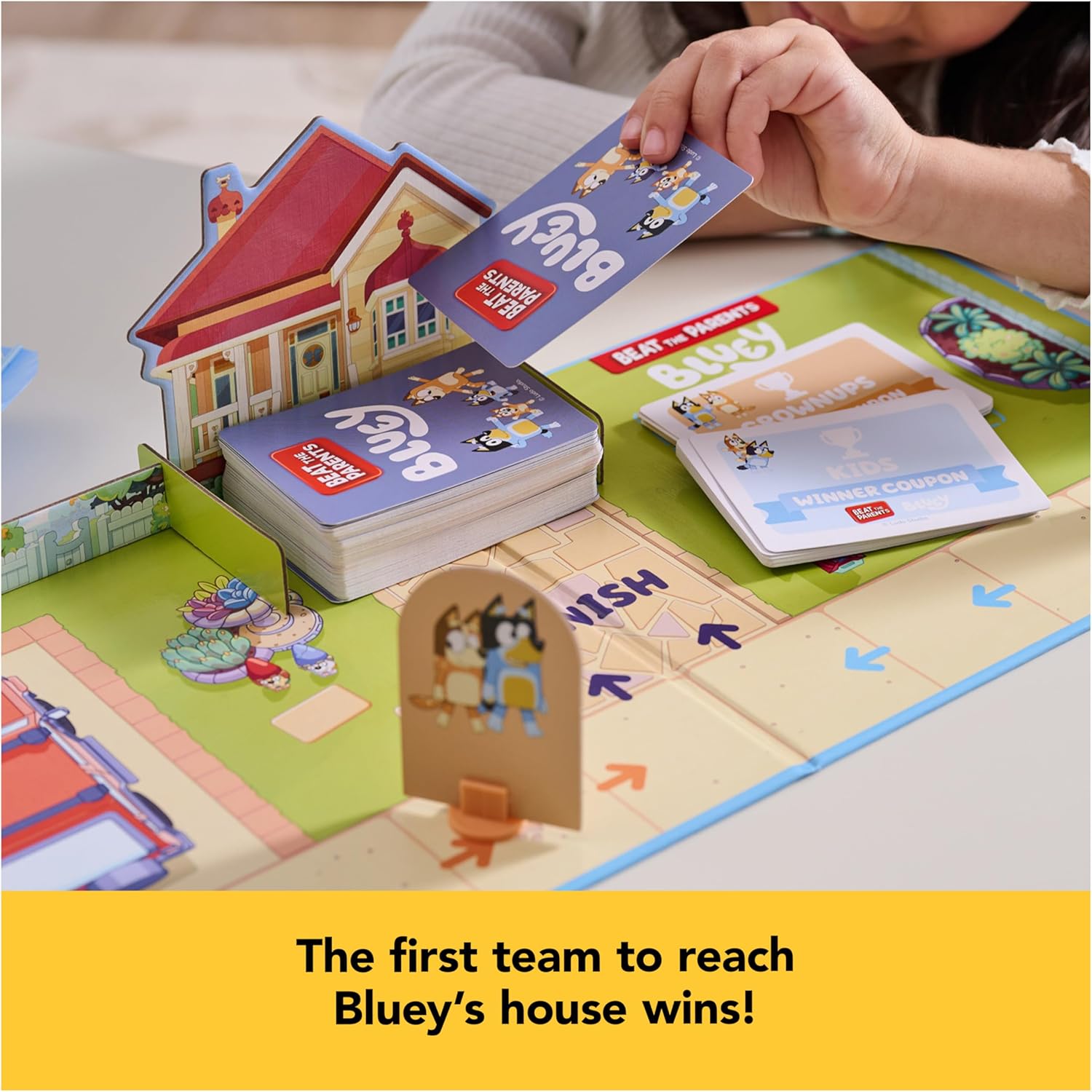 - Reach Blueyโs House To Win: Kids & parents of all ages will have a ton of fun answering tricky questions & completing silly games in this fun-filled Bluey family game. For 2-6 players, ages 5+