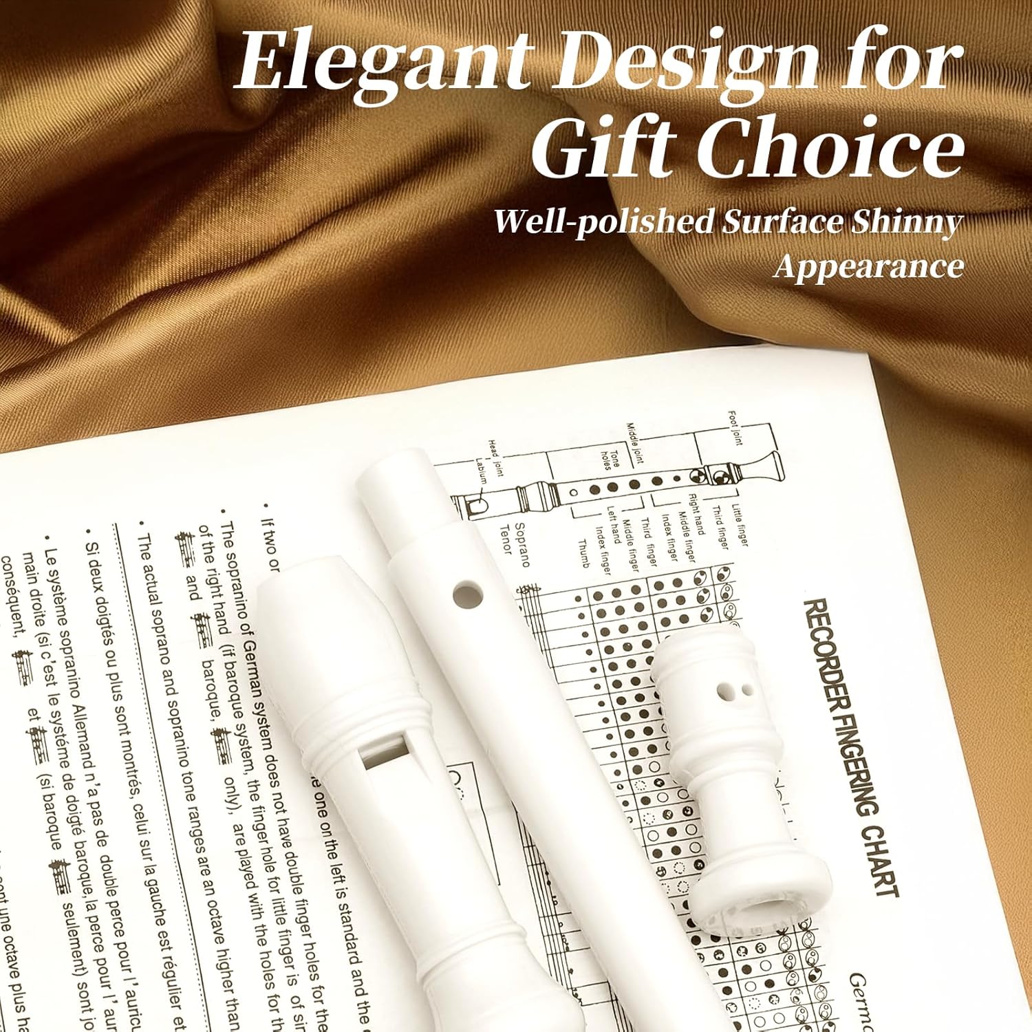 Soprano Recorder for Kids Beginners, German Fingering, C Key, 3 Piece with Cleaning Rod, Bag, Fingering Chart (White)…