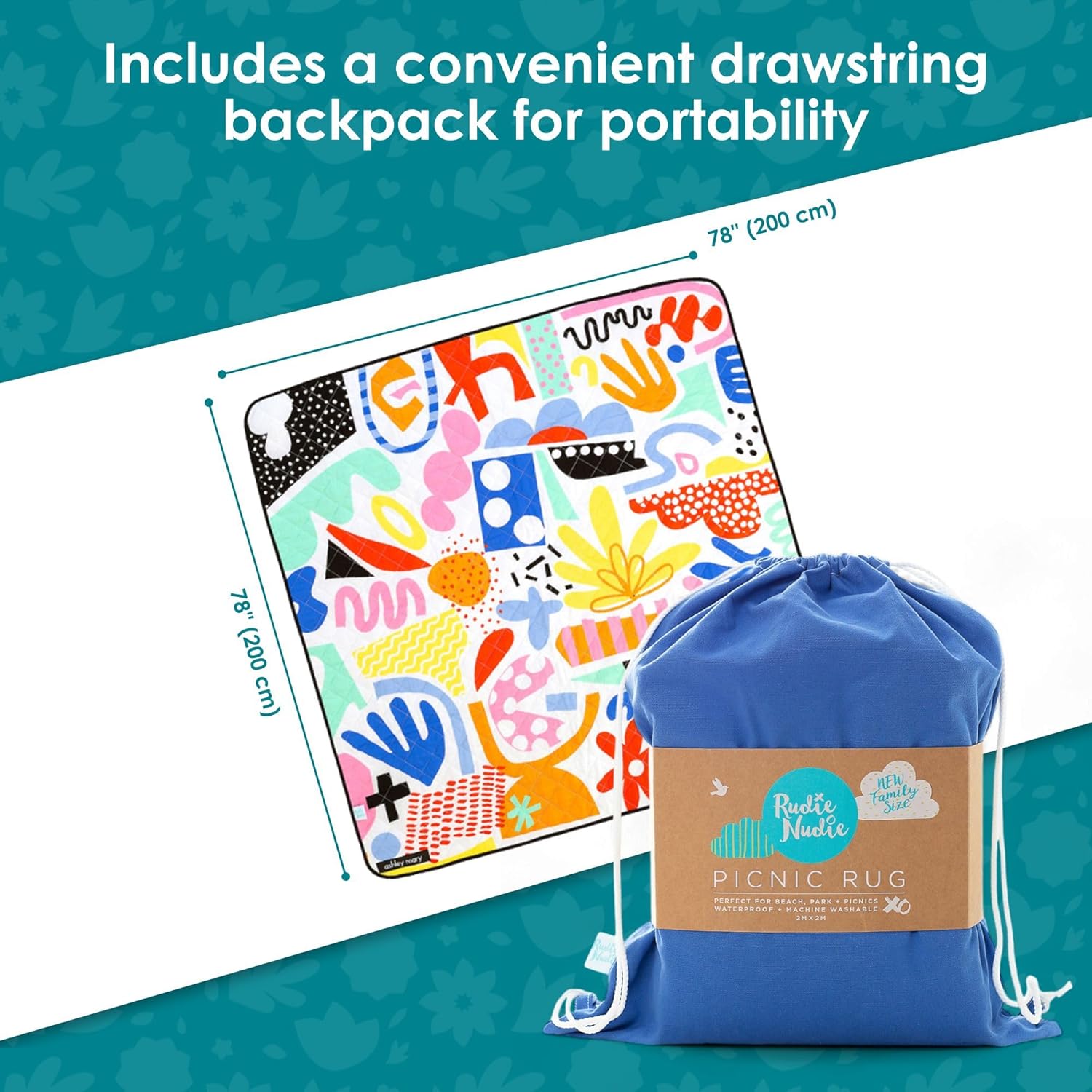 - Jumbo size for family fun: Measuring a generous 78โ x 78โ (200 x 200 cm), the outdoor picnic blanket offers ample space for the entire family to relax and enjoy. It's ideal for group picnics, beach days, or any outdoor activity needing a large, comfortable seating area or park blanket.
