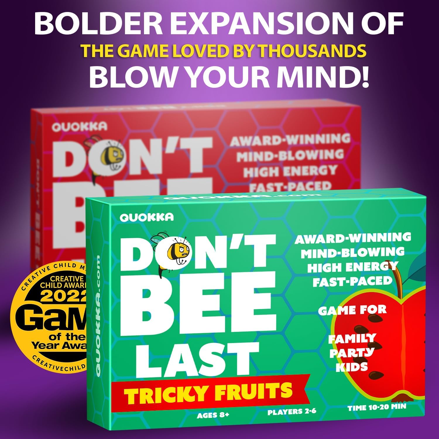 - TRICKY FRUITS EDITION: A thrilling add-on to the fast-paced, brain-blending party game that will electrify your next game night. Battle against your friends and family by taking turns placing cards down and shouting out the correct pattern or shape