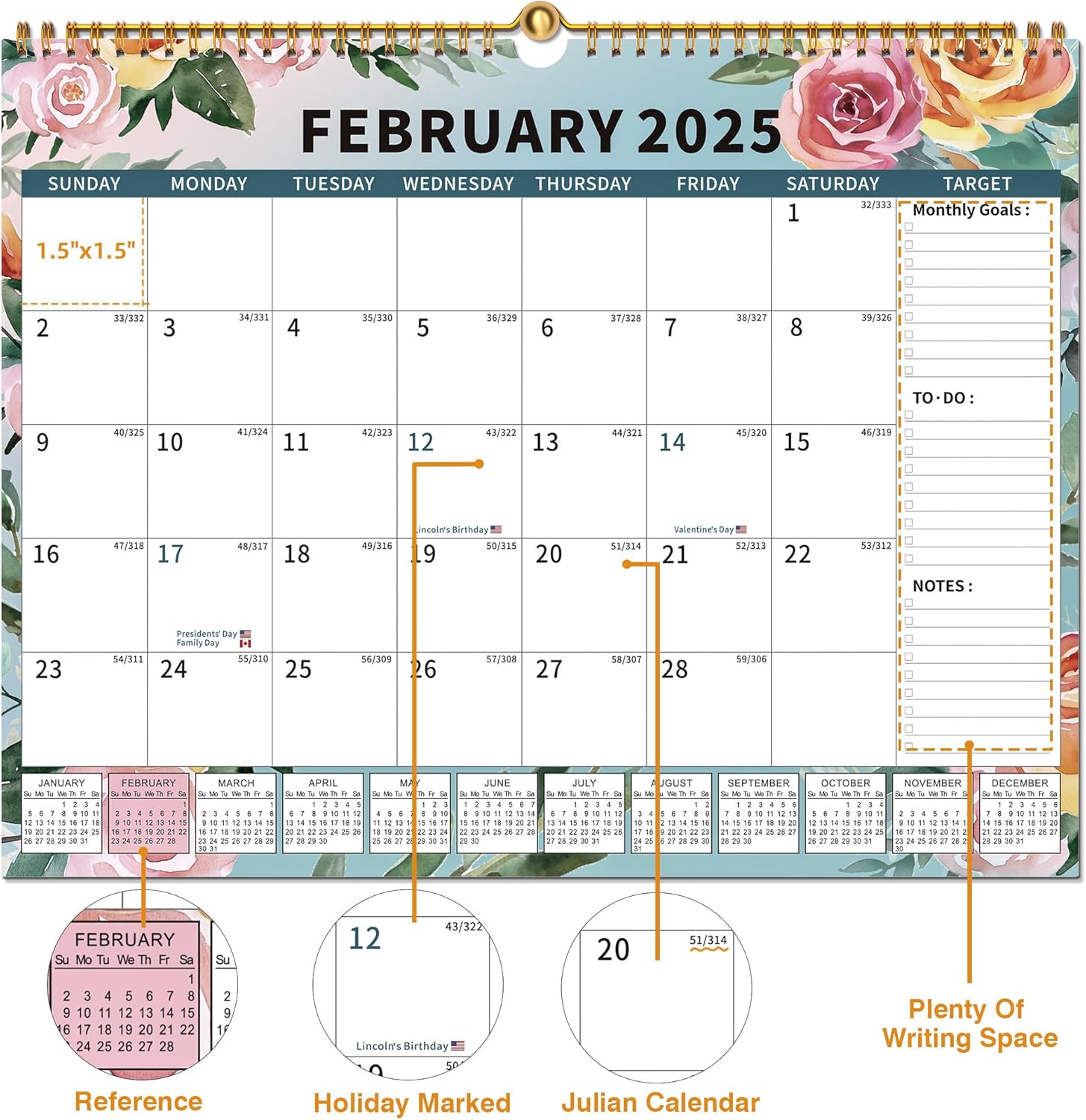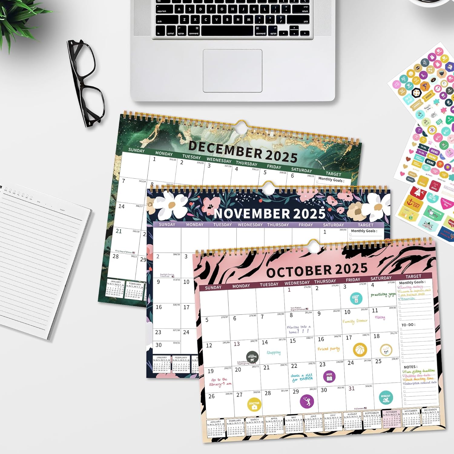 - Maximize your year with festival reminders, sticker attachments, monthly planning, and space for to-do lists.