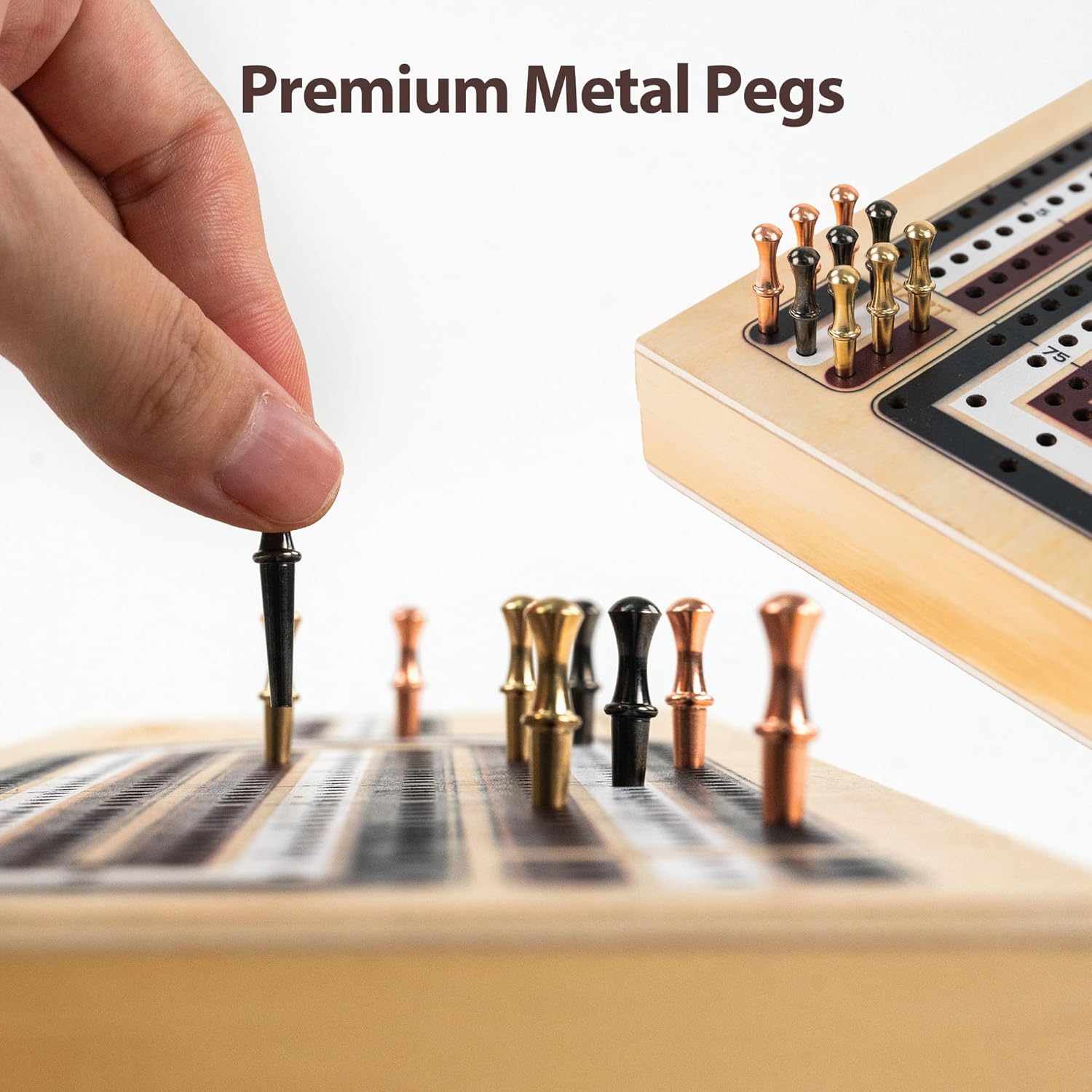 - Classic 3-Track Wooden Cribbage Board: Alongside its eye-catching design, the 3-track system comfortably accommodates 2-3 players, ensuring lively competition for family game nights, friend get-togethers, or casual matches. A classic wooden board game. The UV-printed tracks are clearly marked for easy scoring, keeping strategy sharp and fun flowing for both new and seasoned players