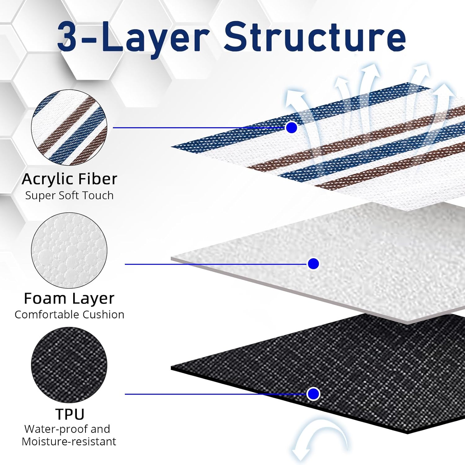 - [ 3 Layers Comfortable Structure] The top of this picnic blanket is acrylic fiber, the middle is foam, and the bottom is a TPU waterproof layer. The picnic blanket is perfectly suitable for siting or lying on the grass, beach and patio, and will keep you soft and comfortable.