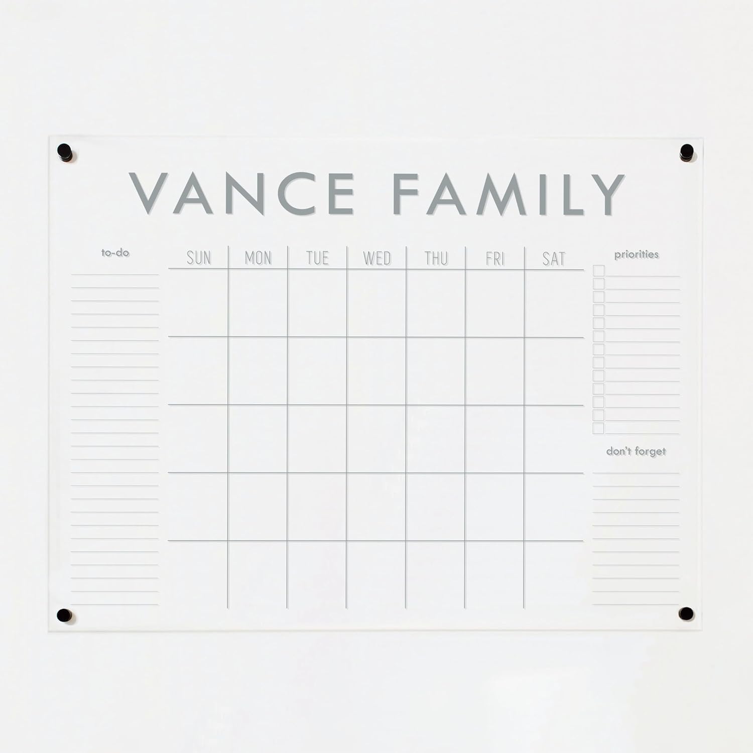 Personalized Clear Acrylic Calendar for Wall, Calendar Whiteboard for Wall, Dry Erase Wall Calendar, Wall Calendar Organizer System for Home (Block, Grey, 47.5"W x 36"H)