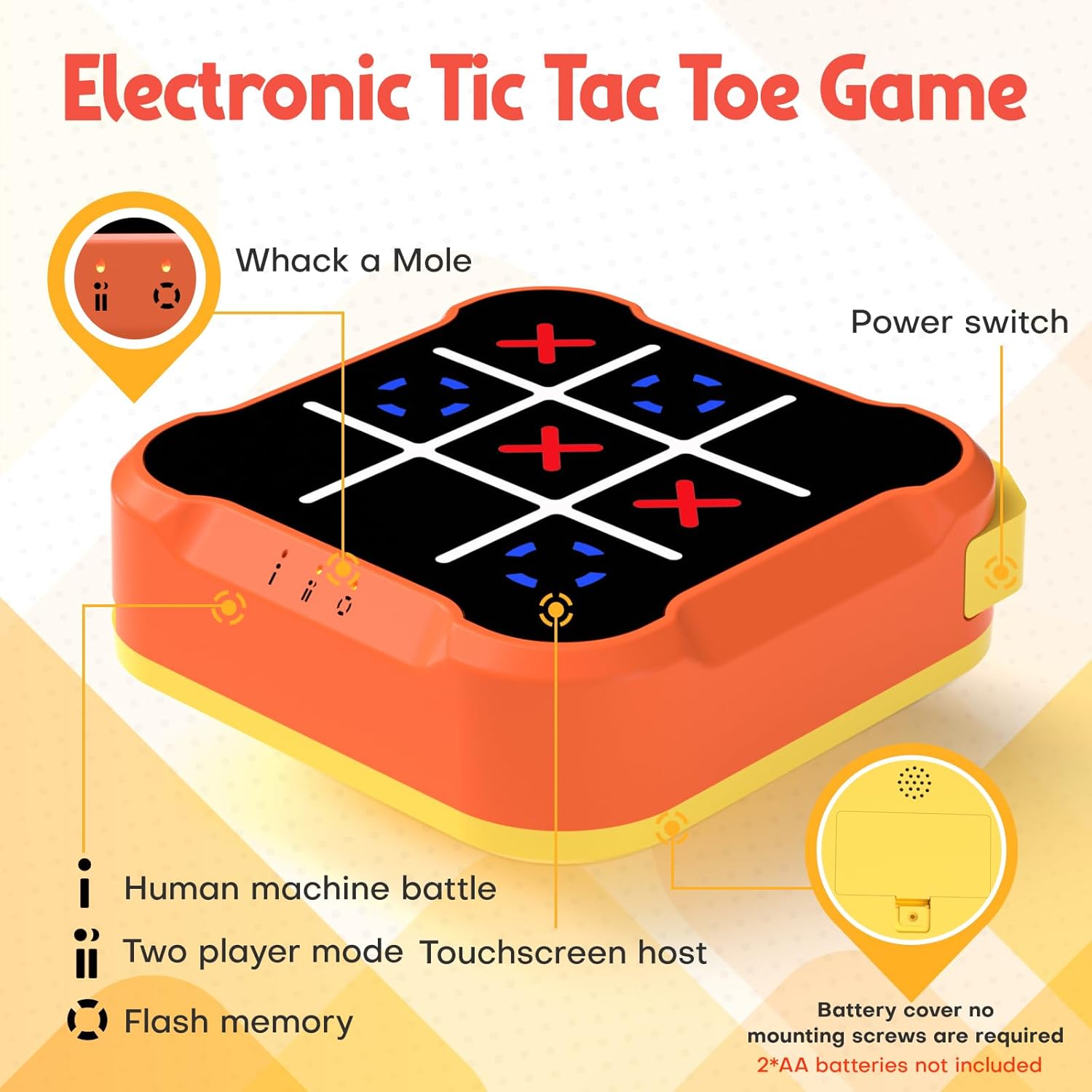 - FOUR IN ONE BOARD GAME - Compared with the wooden board tic-tac-toe, the electronic board game is smaller and more portable, and contain multiple game modes in one body. Enjoy four Tic-Tac-Toe board games in one box, Ideal for family game nights or friend gatherings, it offers quick-to-start fun for players of all ages(2*AA batteries not included).