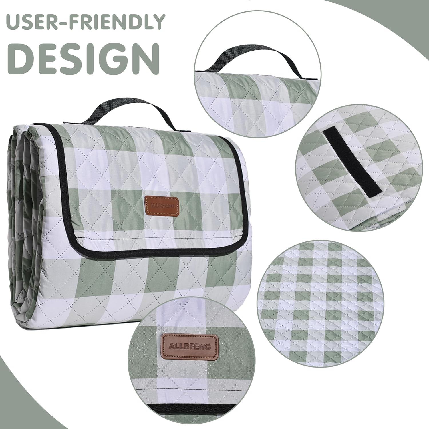 Extra Large Picnic Blanket 80''x 60'' Picnic Mat Waterproof Sand Proof Foldable for Beach, 5-Layer Outdoor Blanket for 6 to 8 Adults,Camping Lawn Hiking Travel Park Music Festival Wedding Mats(Green)