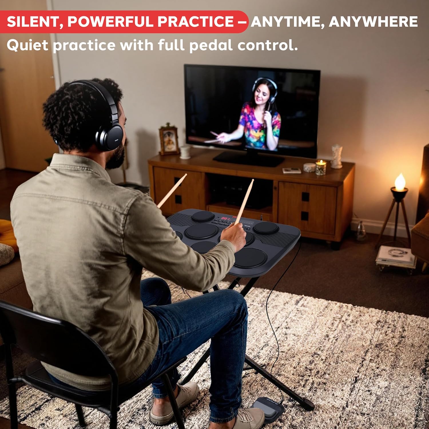 - FULLY FUNCTIONAL PEDALS INCLUDED: This electronic drum set provides distortion-free, sturdy foot pedals that make every beat count—no frustrating pedal issues here! Our kick and hi-hat pedals deliver dependable action, making it easy to stay in rhythm.