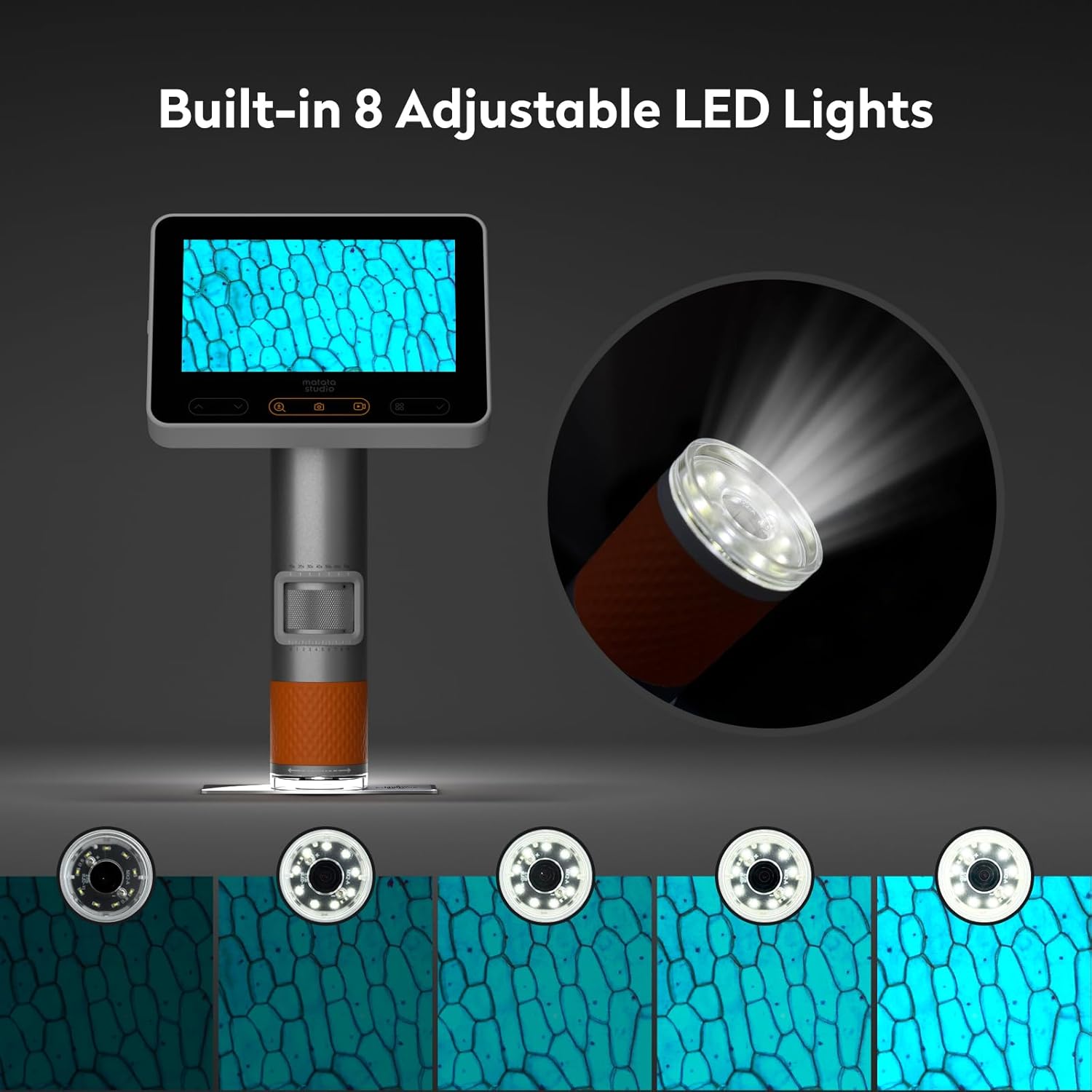 MX2-A Handheld Microscope for Kids, Portable Digital Microscope 100-1600X with 4.3-inch 1080P LCD Screen, MatataStudio Wireless USB Educational Microscopes for Kids & Adults