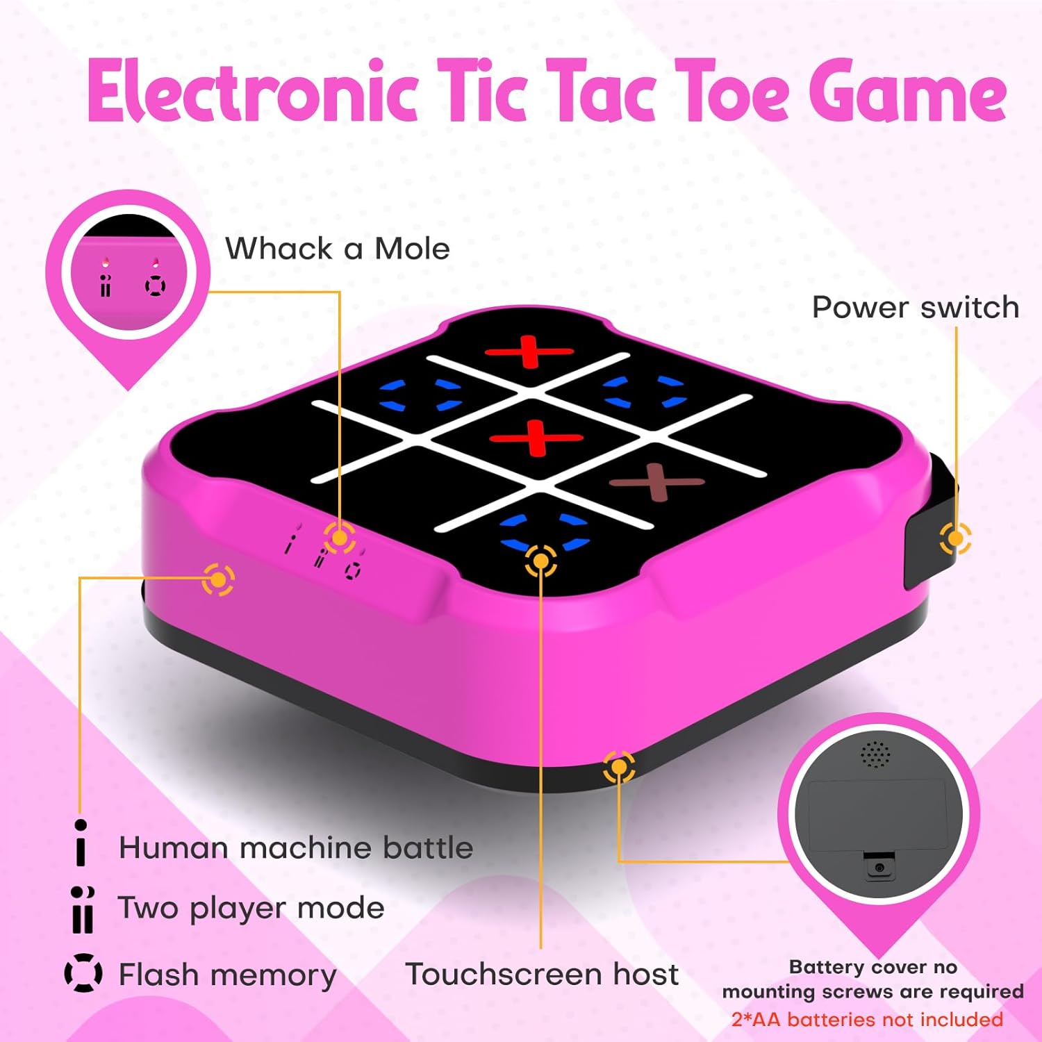 - FOUR IN ONE BOARD GAME - Compared with the wooden tic-tac-toe, the electronic board game is smaller and more portable, and contain multiple modes in one body. Enjoy four electronic games in one box, Ideal for family game nights or friend gatherings, it offers quick-to-start fun for players of all ages(2*AA batteries not included).
