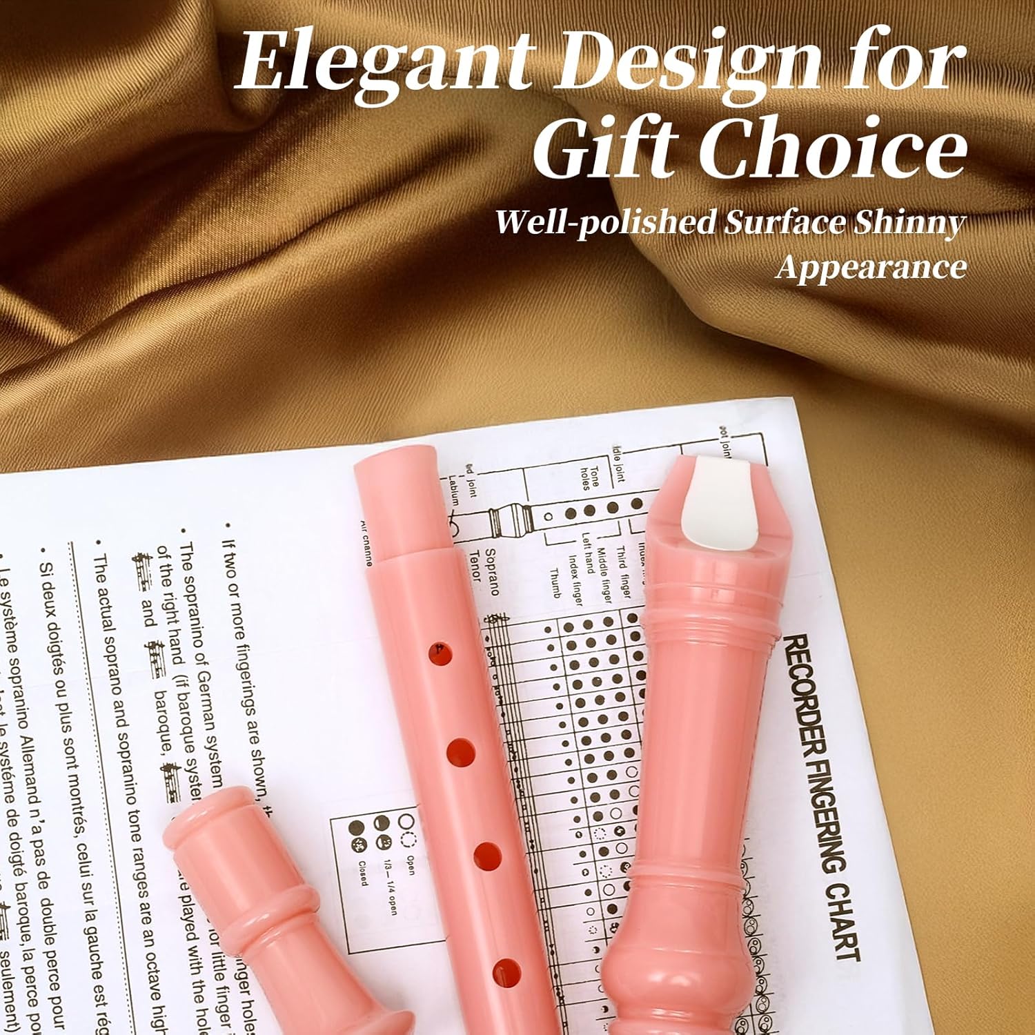 - ♫ Package Contents -- Exquisite packing bag,Soprano Recorder,Fingering Chart, Cleaning Rod, Small wipe.Ours recorder is packed in a storage bag,convenient to carry around it, such as music classes, camping trips, road trips, etc.