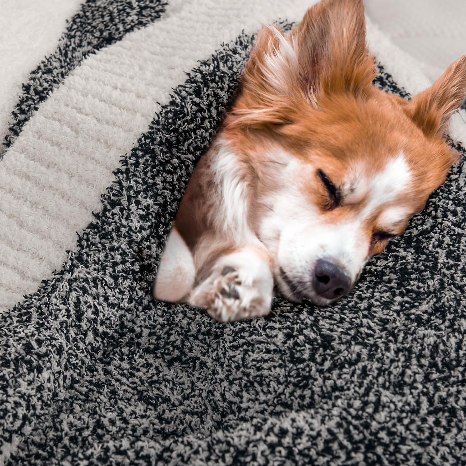 NEXHOME PRO Stripe Throw Blanket, Knit Blanket for Couch Bed Sofa Picnic, Ultra Soft Fuzzy Blankets, Luxury Striped Blanket for Women, Pet, Gifts, Black, 50 x 60 inches
