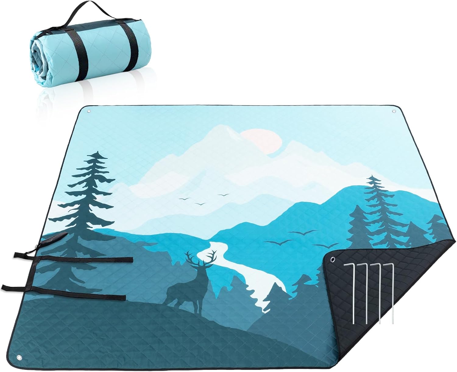 - Windproof anchoring system: Every corner is decorated with thick woven strips, which are used in combination with steel piles to secure your blanket on sandy beaches or windy hillsides