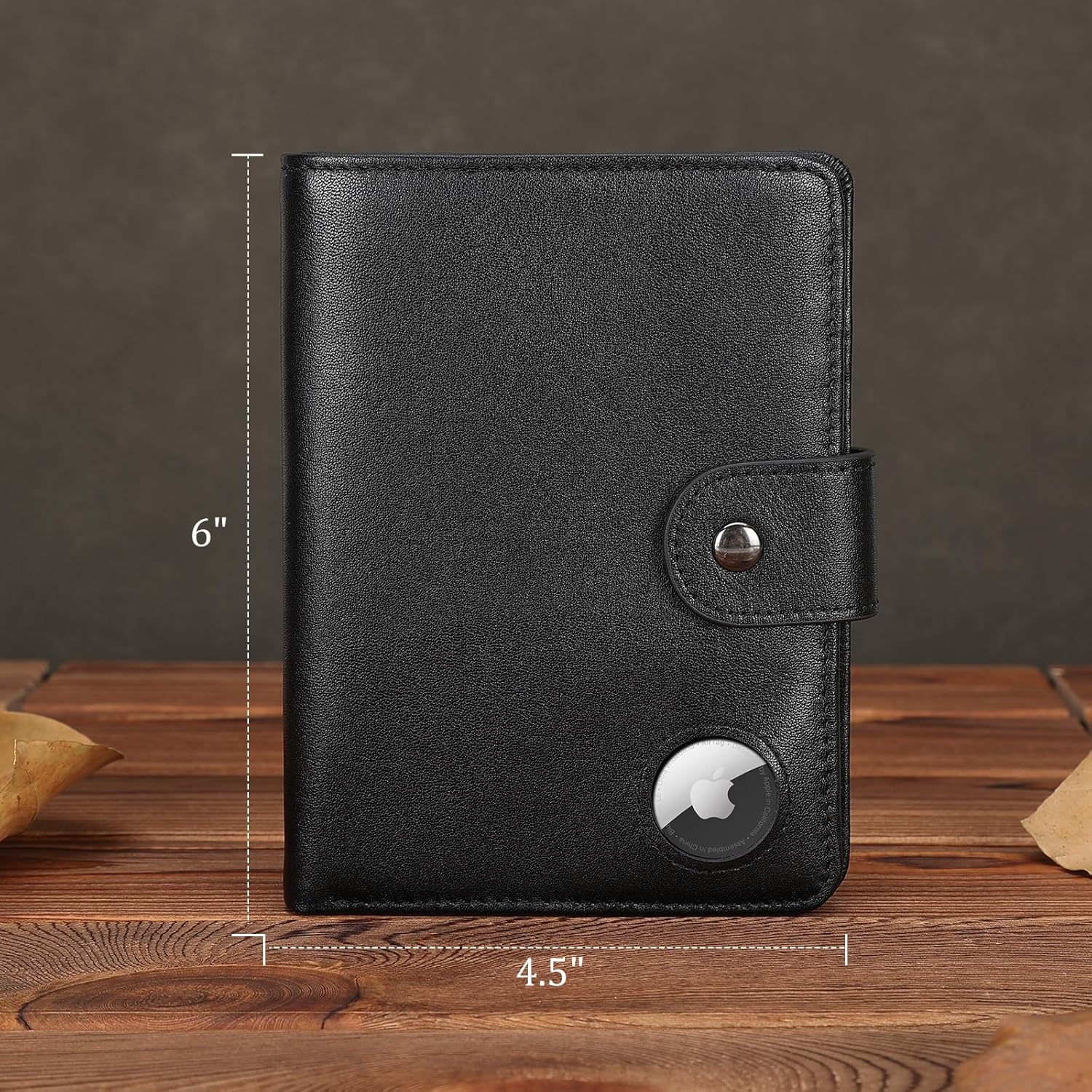 - Dimensions: 4.5(L)*6(H) inches /11.5(L)*15.4(H) cm. Item weight: 0.26lb/0.12kg. Designed with a built-in AirTag holder to keeps your AirTag securely in place. Put your AirTag into the snap AirTag slot and never lose your passport wallet again, providing added security and convenience during your travels. (AirTag Not Included)