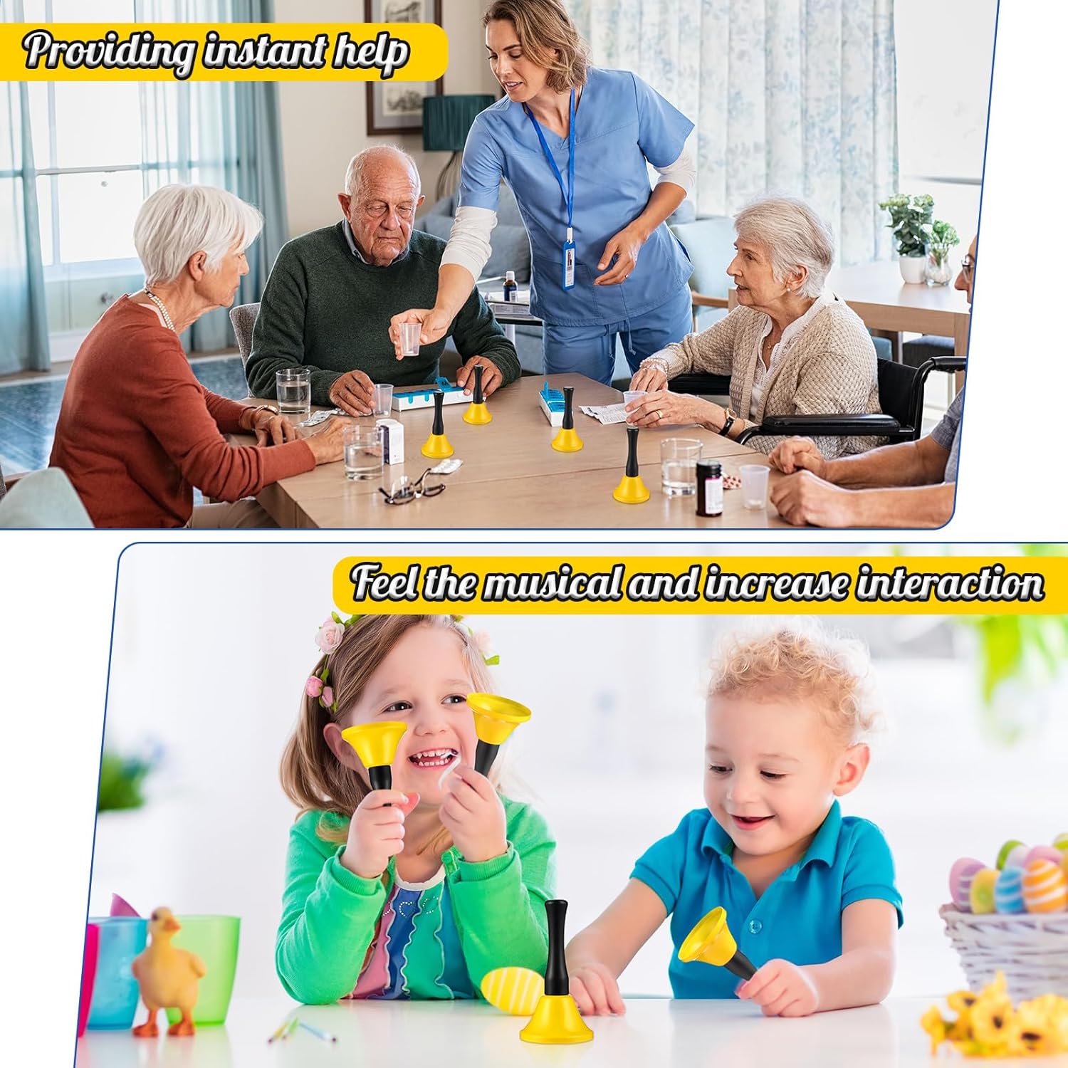 - Easy to Attract Attention: the call bells for adults can produce a pleasant and crisp sound when you hold the handles and shake the bells gently, able to attract people's attention quickly in a gentle way