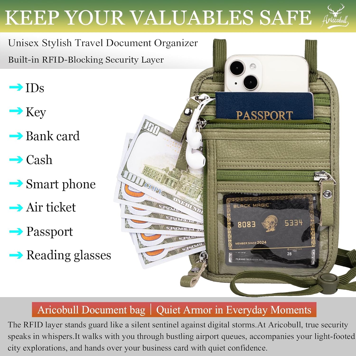 - Discreet Anti-Theft Design – Our Ariscobull Neck Wallet Makes It Super Easy To Add Or Remove Items, Keep Valuables Hidden Under Clothing, Perfect For Travel And Crowded Areas.