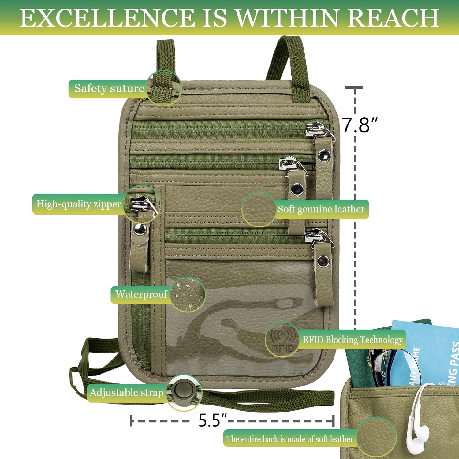 - Spacious And Organized – Size 7.8*5.5in, A Stylish, Easy-To-Use Design, That’S Comfortable And Lightweight. With Zippered Pockets, A Velcro Patch, And A Clear Id Window. Fits Passports & Large Smartphones, Cash, And Tickets.
