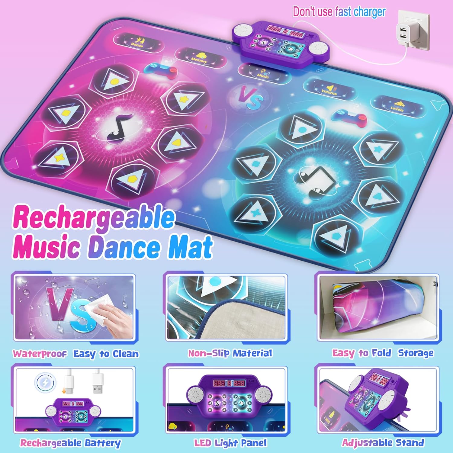 - This dance mat isn’t just fun—it’s practical, too. Made from lightweight, foldable PEVA material, it can be quickly rolled or folded into a compact size after play, making storage in a closet, under a bed, or inside a toy box effortless. Its easy-clean surface wipes down in seconds, keeping it fresh through countless dance sessions. As a gift, it offers not only active entertainment but also hassle-free convenience that parents and kids will appreciate. Perfect for birthdays, holidays, or surprises, it’s a present that keeps the fun going and the space tidy.