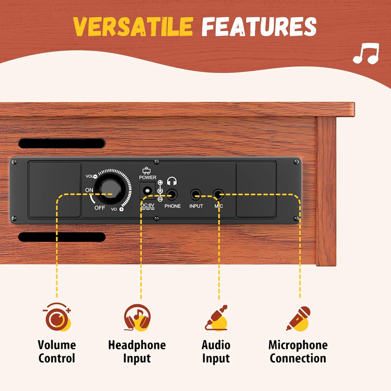 - Safe & Sturdy Wooden Frame: The kids keyboard is made from safe wood with smooth surfaces, perfect for little hands. Gentle, rounded corners help prevent bumps during play. Its removable and reinforced side panels ensure this wood piano stays stable and won't tip over easily—whether on a table or the floor. Built to last, this kids piano is durable and long-lasting.