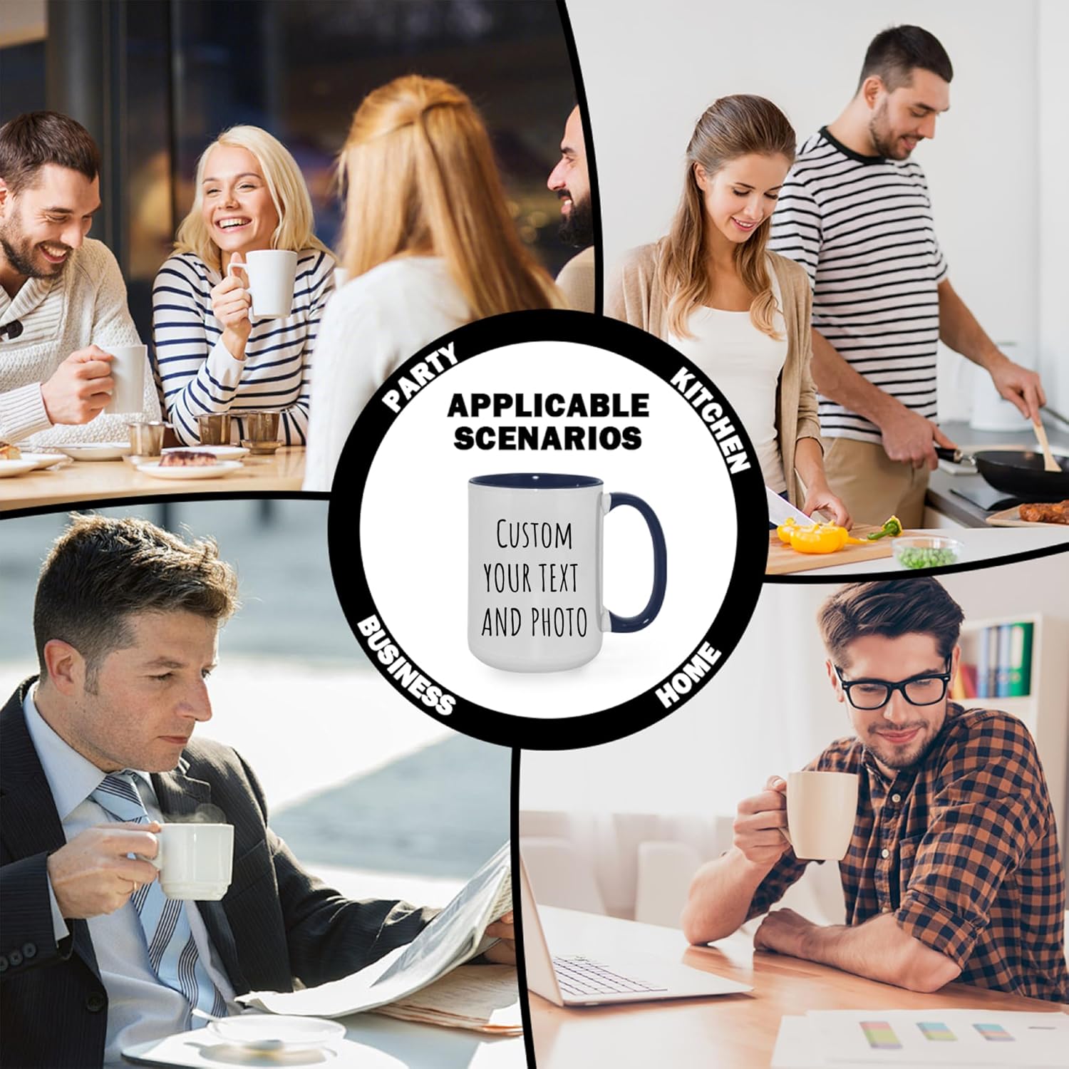 Custom Mug Upload Your Picture Personalized Coffee Mug with Photo Text Name Customized Cup Unique Ideas Gifts for Men Women Mom Dad Girlfriend Boyfriend Friend Family (Dark Blue, 15oz)